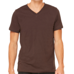 Bella+Canvas Unisex 4.4 Ounce Jersey Short Sleeve V-Neck T-Shirt. Sideseamed. Retail fit. Unisex sizing. Shoulder taping. Tear Away Label. Solid Colors: 100% Airlume Combed and Ringspun Cotton, 32 singles 4.2 oz. (Ash 99/1% Airlume Combed and Ringspun Cotton/poly; Athletic Heather 90/10% Airlume Combed and Ringspun Cotton/poly; All other Heather CVC/Blend colors 52/48% Airlume Combed and Ringspun Cotton/poly. Marble Colors: 91/9% Airlume Combed and Ringspun Cotton/poly, 30 single 4.0 oz. Neon Colors: 52/48% Airlume Combed and Ringspun Cotton/poly, 40 single 3.6 oz. Slub: 50/37.5/12.5 poly/Airlume Combed and Ringspun Cotton/rayon. Mineral Wash (due to specialized washing process, each shirt is unique): 100% Airlume Combed and Ringspun Cotton, 32 Single 4.4 Oz.