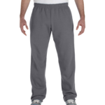 Gildan Heavy Blend 8.0 Ounce Adult Open-Bottom Sweatpants. 8.0 ounce, 50/50 cotton/polyester preshrunk fleece knit fabric. Slightly tapered leg with open bottom. Covered elastic waistband with drawcord. Differential rise for better fit. Sideseamed. Tear away label.